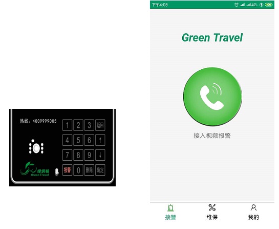 EC100智能電梯梯控多媒體機帶有一鍵式呼叫報警功能。當電梯發生故障轎廂內部有人員被困住,受困人員可以按下多媒體機報警鍵,物業管理人員、電梯維保人員將會收到報警電話和報警短信,在綠炳暢維保客戶端app輸入報警短信中的房間號,智能電梯梯控多媒體機將會聯通物業管理人員、電梯維保人員的手機app進行多方視頻通話,物業管理人員和電梯維保人員第一時間知情哪部電梯發生故障,某個電梯控制單元發生故障,及時安撫電梯里的受困人員并救援,避免受困人員焦躁,做出危險行為。